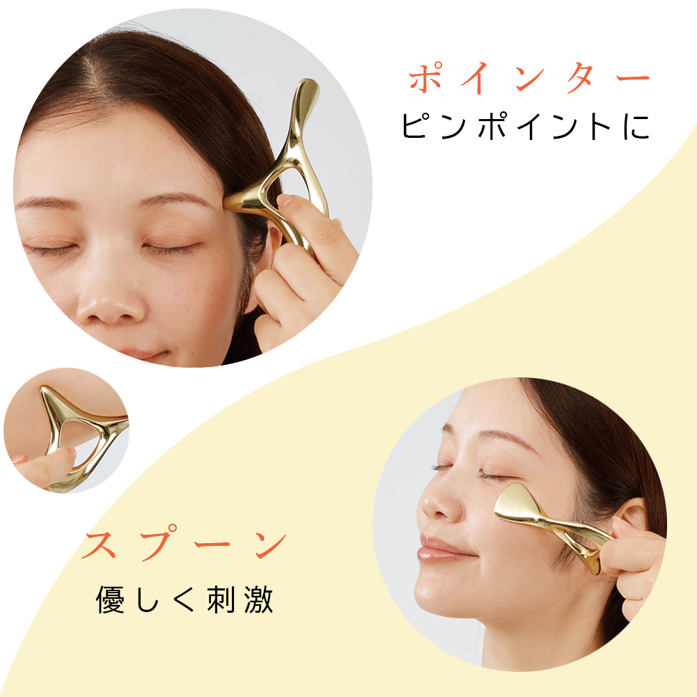 指先から伝わる熱でじんわり刺激できるフェイス用かっさプレート。 なでる、ほぐす、流すをこれ一つで。