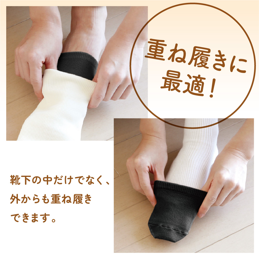 靴下の中だけでなく、外からも重ね履きできます。
