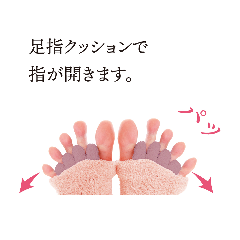 指先が開く設計で縮こまった指と指をパッとひらいて心地よくストレッチ。 締め付けすぎない適度な着圧でふくらはぎをサポート。肌触りのよい優しい素材で快適な履き心地です。