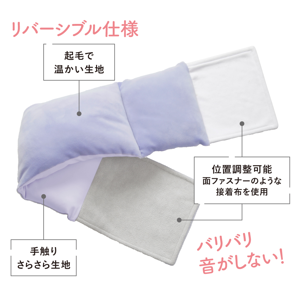 暑い時期はさらりとした生地を、寒い時期は起毛の生地を肌側に巻くと快適にお使いいただけます。