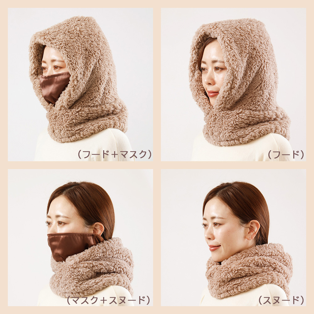 フードを下ろせばスヌードとしてもご使用いただけます。 |