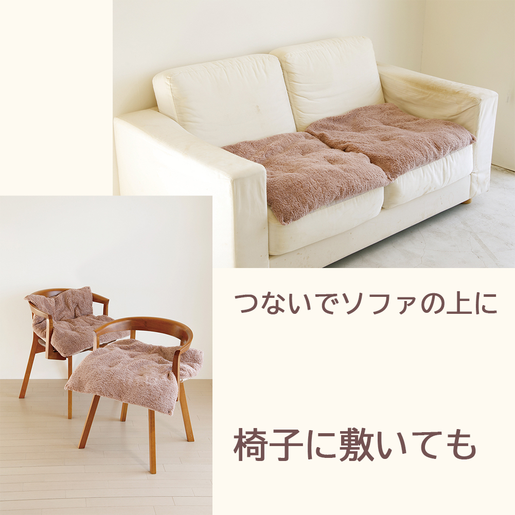 3枚つなげてロングクッション、1枚で座布団に。 マルチに使えるあったかクッション。